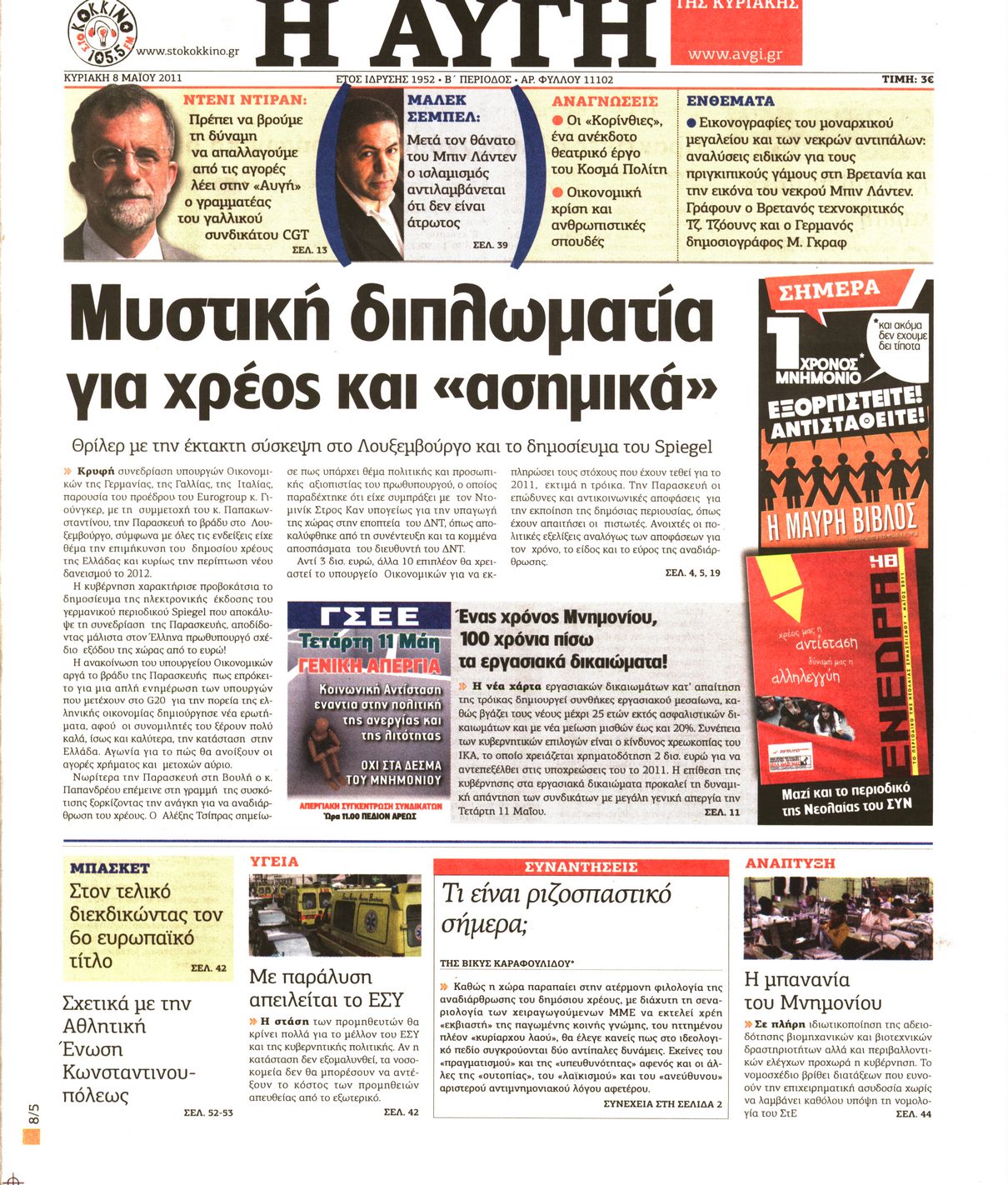 ΤΟ ΠΡΩΤΟΣΕΛΙΔΟ ΤΗΣ ΗΜΕΡΑΣ!!! 8/5/2011