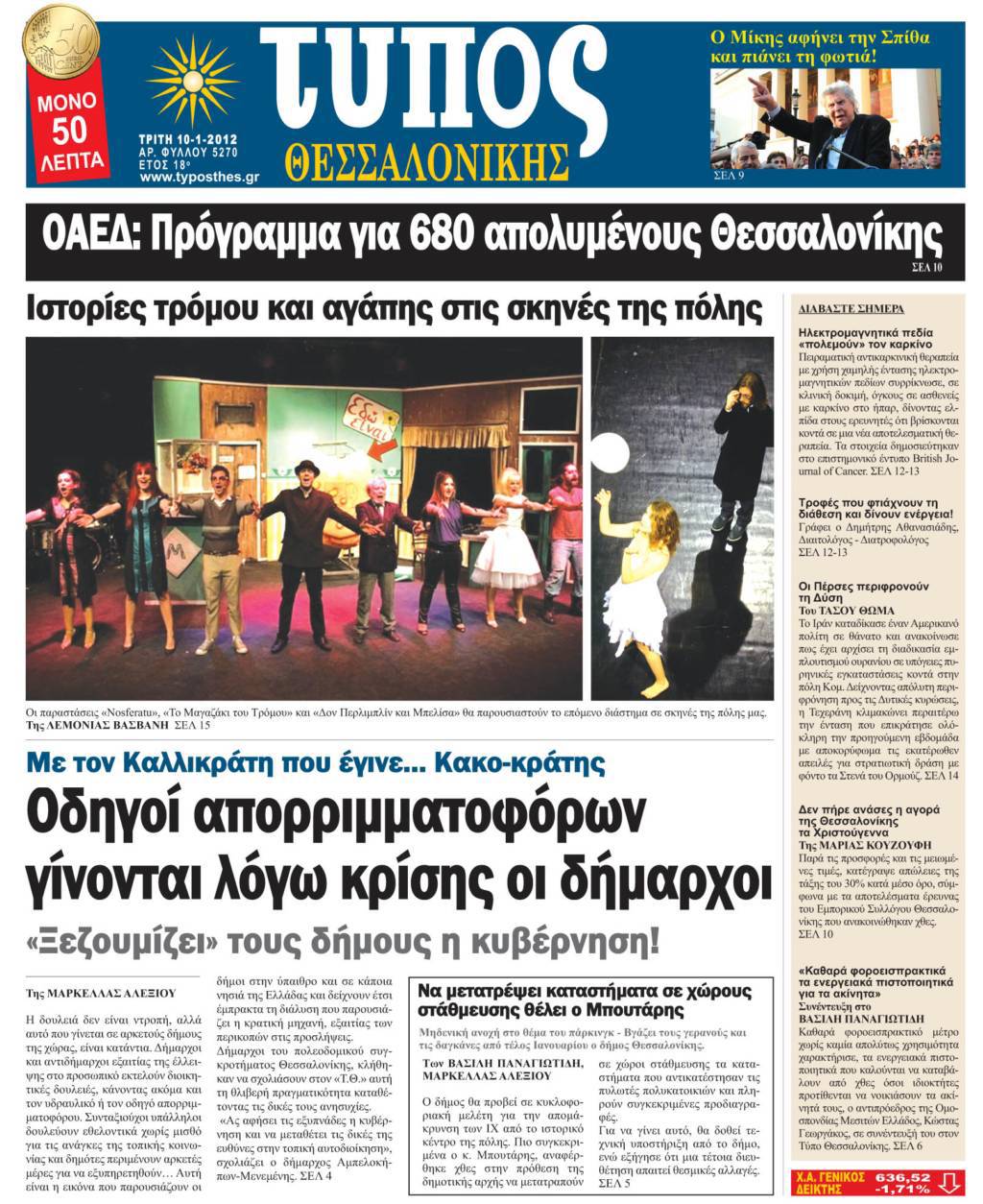 ΤΟ ΠΡΩΤΟΣΕΛΙΔΟ ΤΗΣ ΗΜΕΡΑΣ!!! 10/1/2012