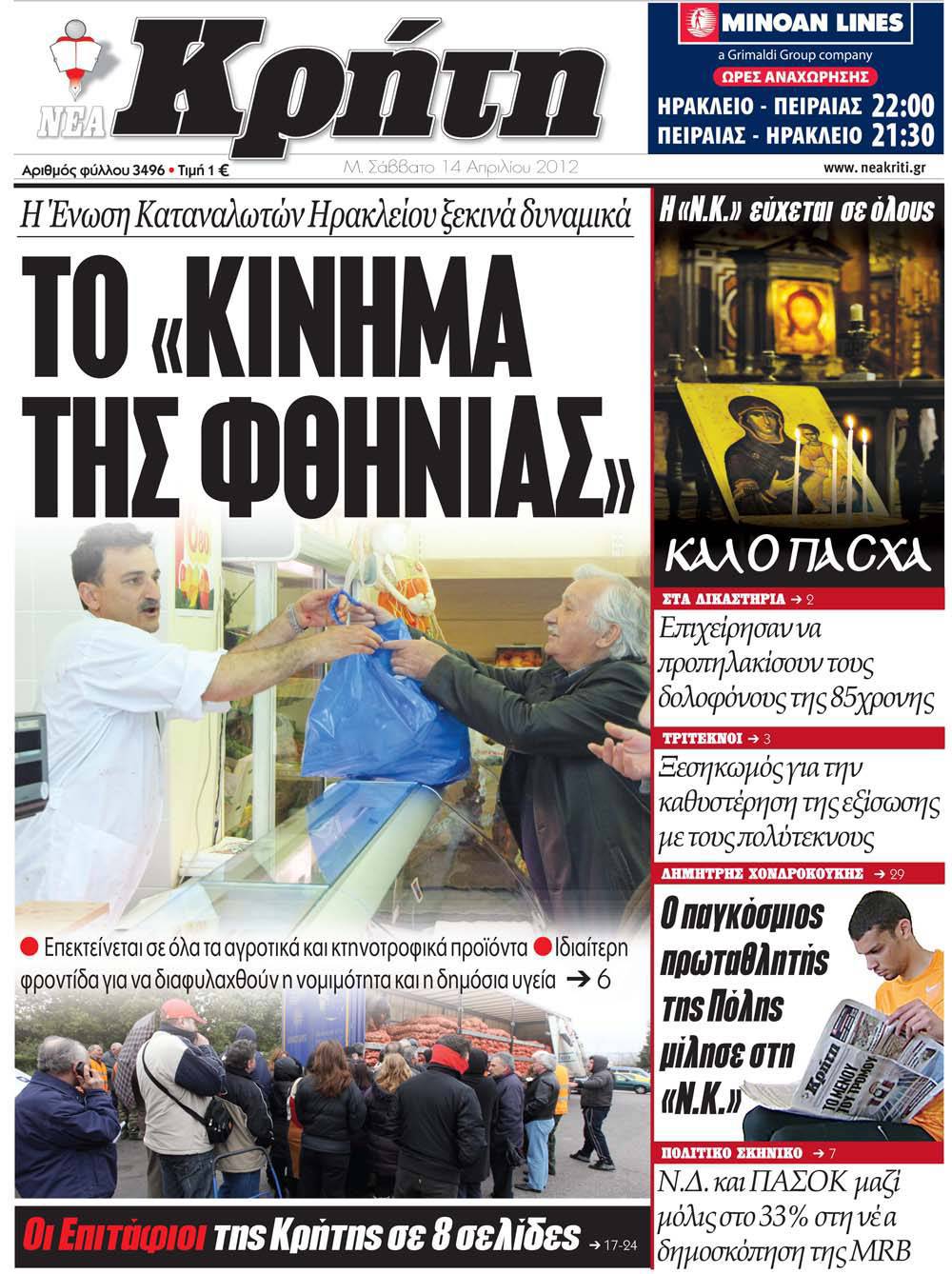 ΤΟ ΠΡΩΤΟΣΕΛΙΔΟ ΤΗΣ ΗΜΕΡΑΣ 15/4/2012
