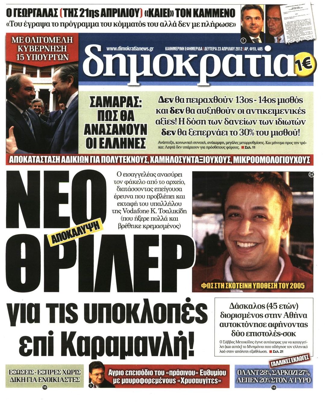 ΤΟ ΠΡΩΤΟΣΕΛΙΔΟ ΤΗΣ ΗΜΕΡΑΣ 23/4/2012