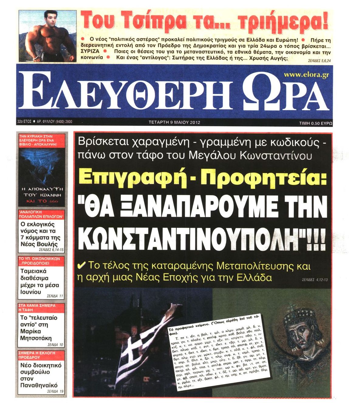 Το πρωτοσέλιδο της ημέρας 9/5/2012