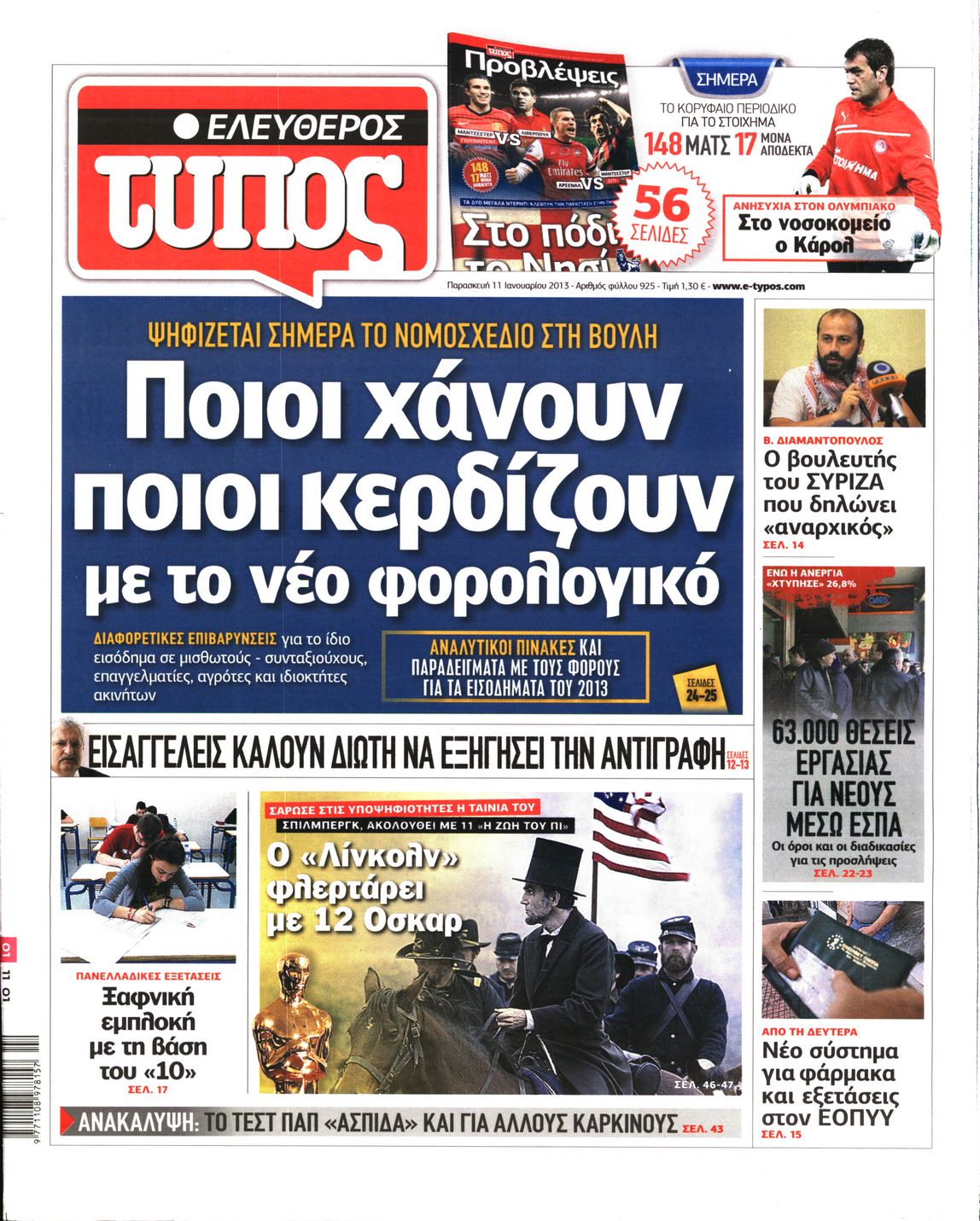 ΤΟ ΠΡΩΤΟΣΕΛΙΔΟ ΤΗΣ ΗΜΕΡΑΣ 11/1/2013