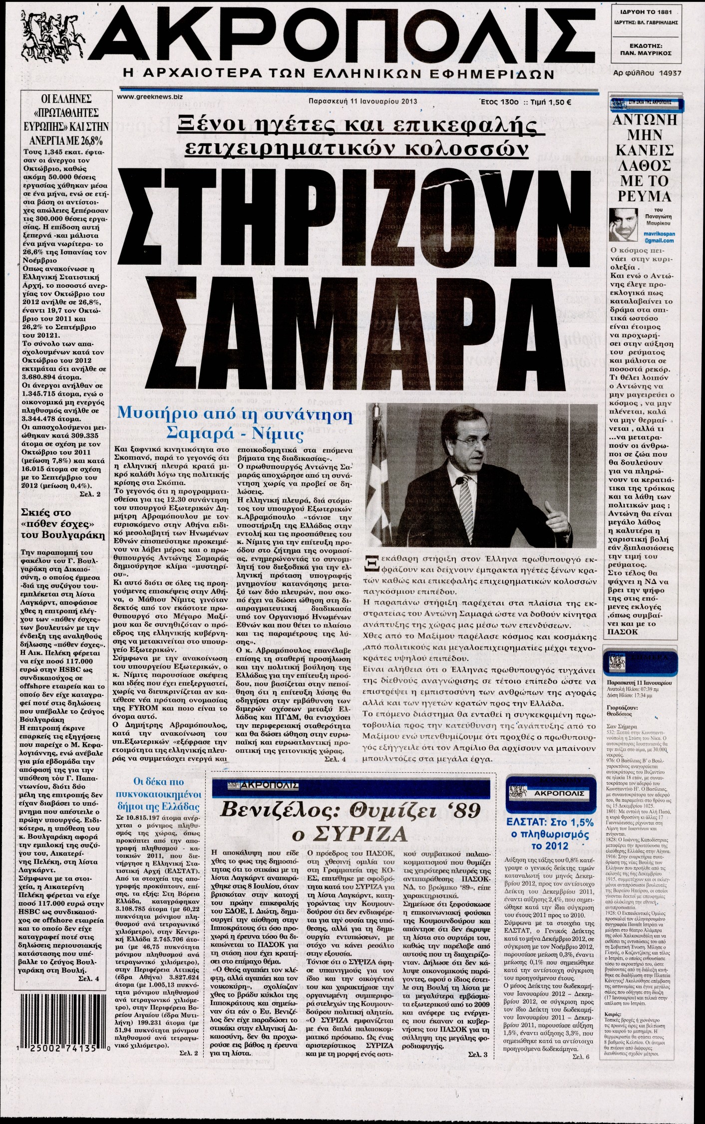 Με διαφορά μιας μέρας τα πρωτοσέλιδα της εφημερίδας ΑΚΡΟΠΟΛΗΣ... Στο πρώτο με μεγάλα γράμματα μας λένε για τελευταία φορά πως ΗΡΘΕ Η ΩΡΑ ΤΟΥ