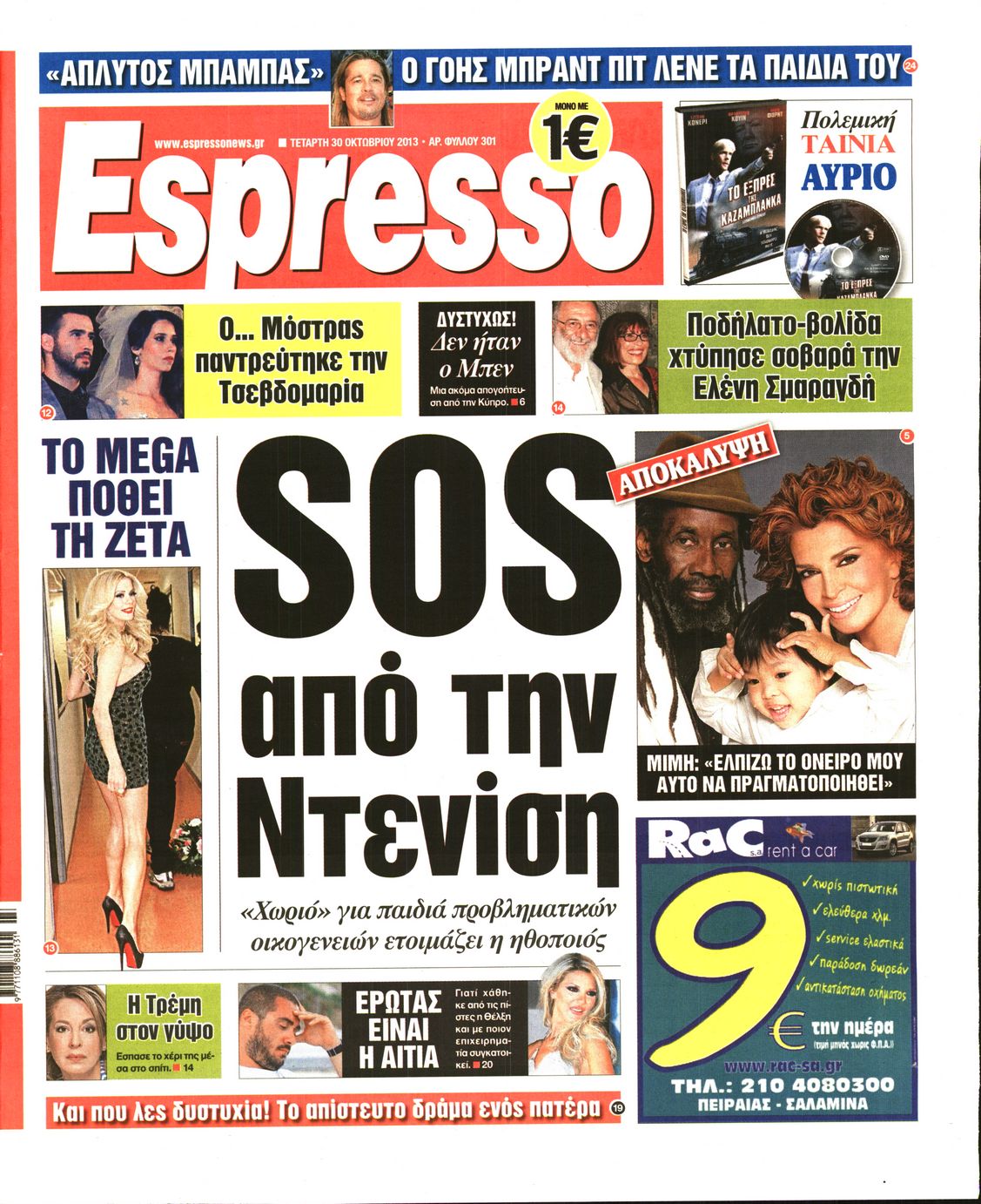 Το πρωτοσέλιδο της ημέρας 30/10/2013