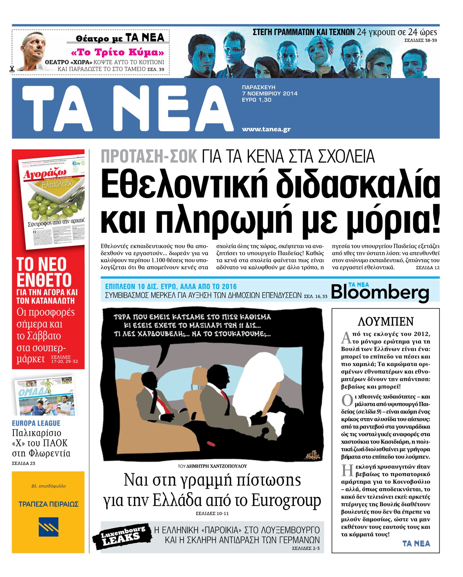 Το πρωτοσέλιδο της ημέρας 7/11/2014