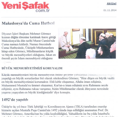 μουσουλμανικής κοινότητας του κρατιδίου των Σκοπίων. Ο Τούρκος αρχιμουφτής