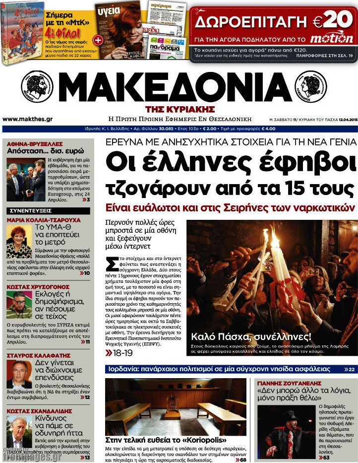 Το πρωτοσέλιδο της ημέρας 11/4/2015