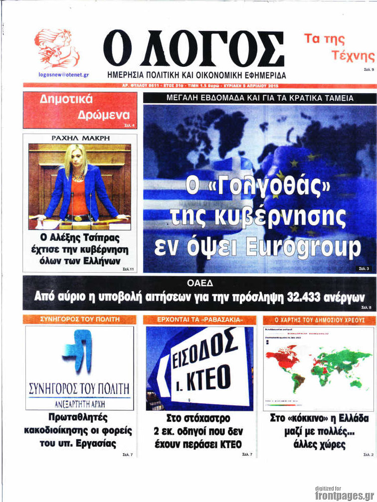 το πρωτοσέλιδο της ημέρας 5/4/2015