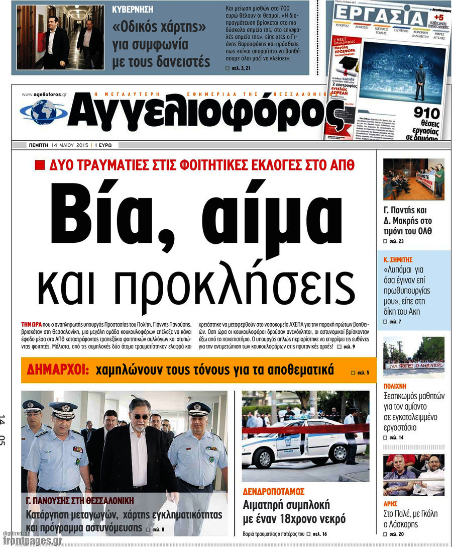 Το πρωτοσέλιδο της ημέρας14/5/2015