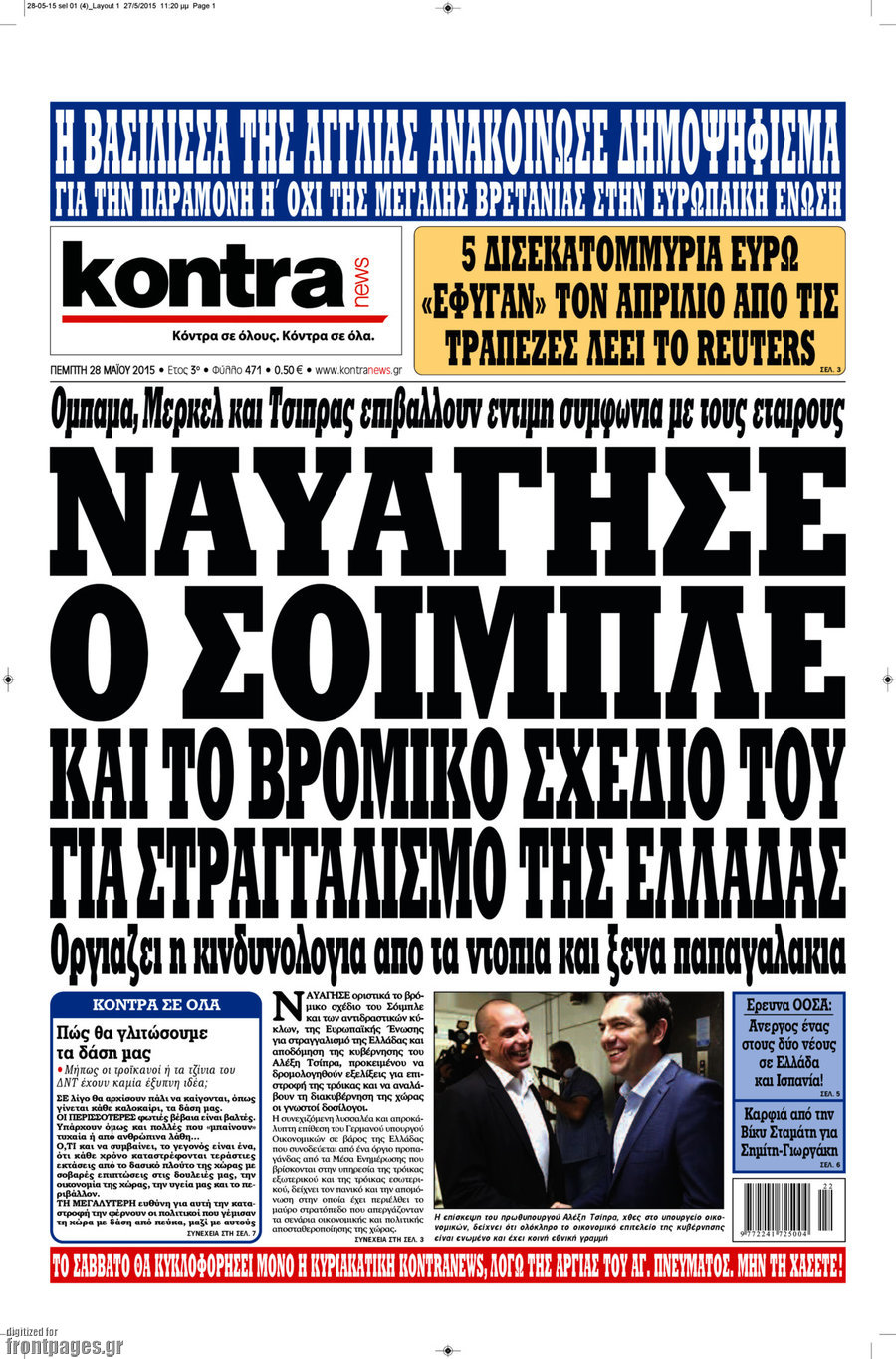 Το πρωτοσέλιδο της ημερας 28/5/2015