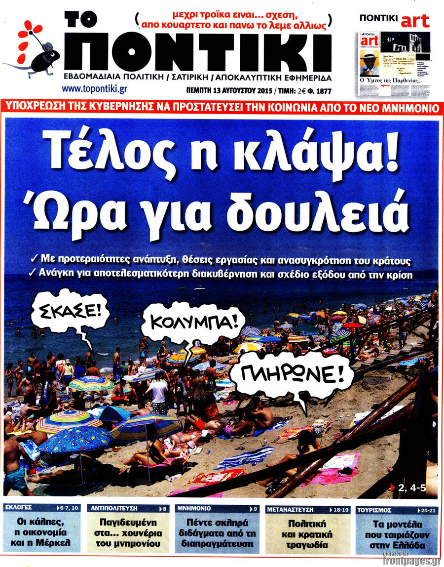 Το πτωτοσέλιδο της ημέρας 13/8/2015