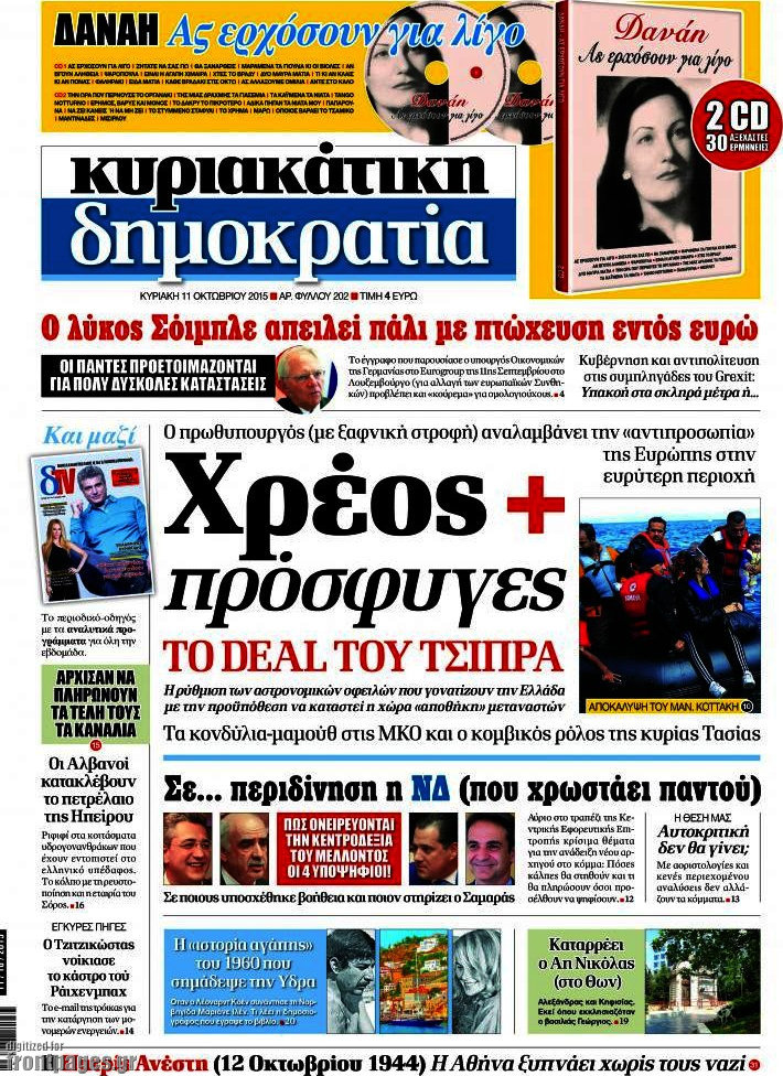 Το πρωτοσέλιδο της ημέρας 11/10/2015
