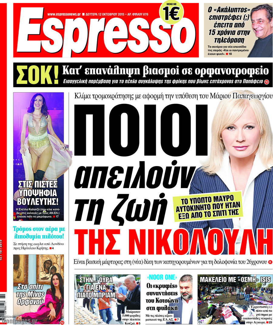 Το πρωτοσέλιδο της ημέρας 12/10/2015
