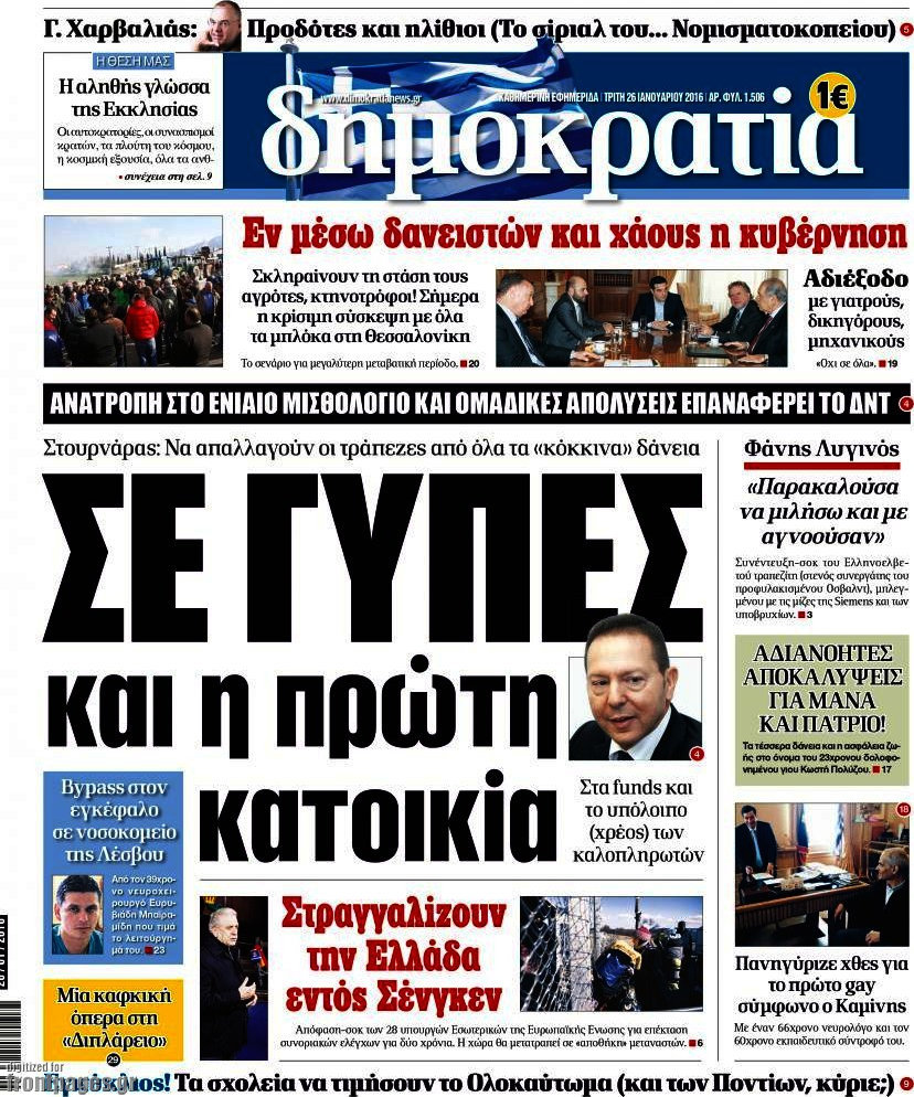 Το πρωτοσέλιδο της ημέρας 26/1/2015